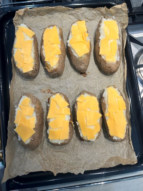 彼が作ってくれたのは、コーン・スフレ、グリーンビーン・キャセロール、そして、twice baked potatoesを手伝ってくれた。